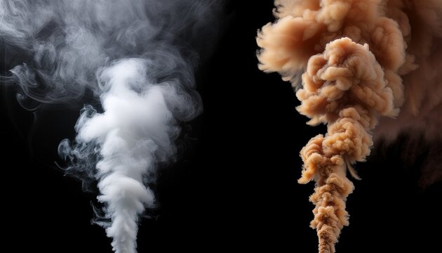 two columns of smoke rise against a transparent background one column is dark gray while the other is light brown the smoke appears dense and billowy