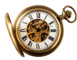 Open Pocket Watch with Visible Clock Hands at Ten Past Two, Elegant Antique Design, isolated on transparent background