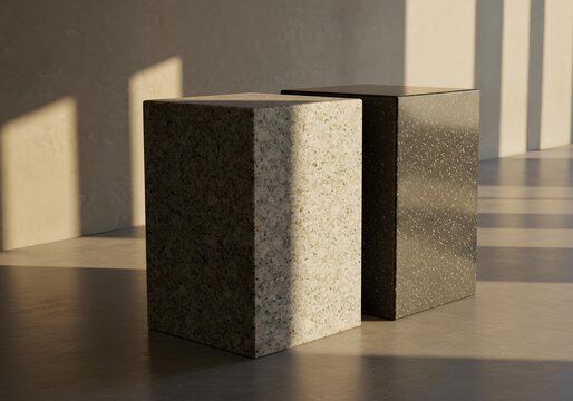 Speckled Square Pedestals in Hallway with Striking Window Shadows
