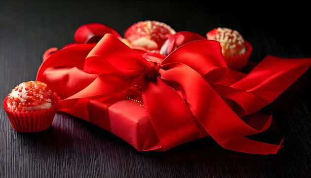 Close-up of hands tying ribbon on gift box in elegant red theme