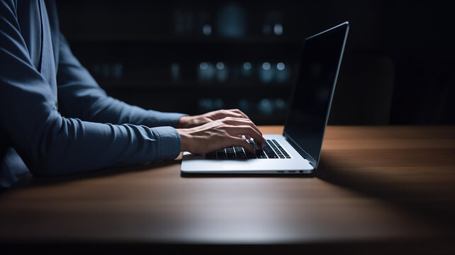 close up horizontal view of hands typing on a laptop keyboard AI generated