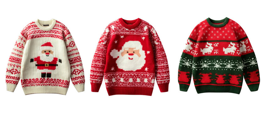 Set of three Christmas ugly sweaters transparent background