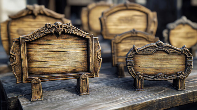 Vector wooden game signboard texture banner set. Wood material plank frame ui label on transparent background. Rustic blank arrow element and sign board for advertising or button design collection.