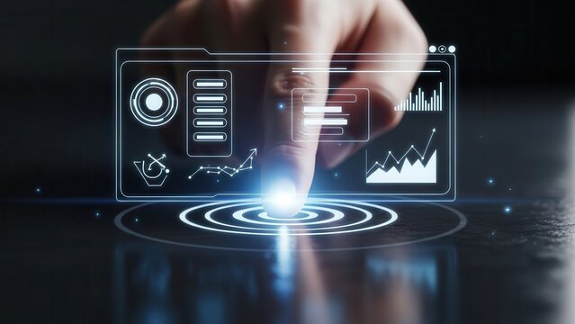 Futuristic holographic interface with ui icons and charts