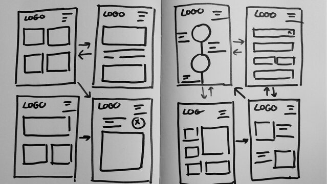 Woman designer create website design wireframe Sketch prototype framework layout future design project UI and UX  user interface user experience designer Creative concept for web desig : Generative AI