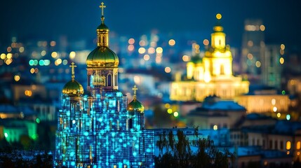 St. Sophia Cathedral in Kyiv, Ukraine, Blending History and Modern Technology at Dusk