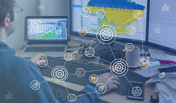 Network internet technologies, digital software development, future technologies and concepts. Caria of Ukraine on the monitor