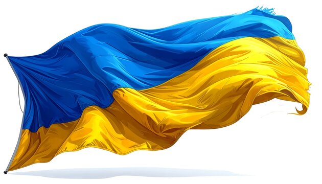 A vibrant illustration of the Ukrainian flag billowing in the wind, showcasing its bold blue and yellow colors.