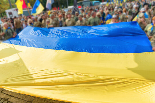 People with Ukrainian flag