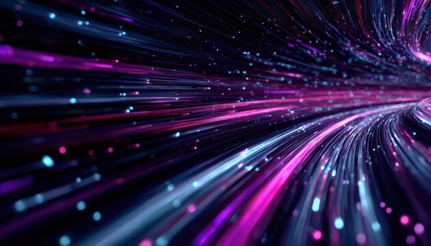 Futuristic Technology: Speed Of Light Aesthetic, Cyberpunk Elements With Technological Appeal. Rendering Of Abstract Neon Space Tunnel, Emitting Ultraviolet Rays.