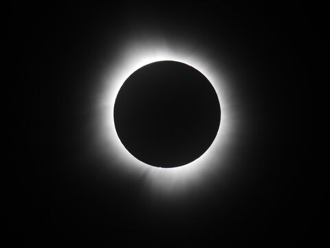 Solar Eclipse in Totality with Radiant Corona, Dark Moon Silhouette Against Sun