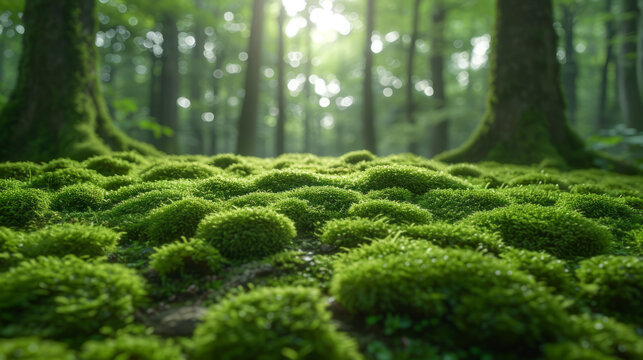 Alert fluffy canine in sunlit forest clearing with bushy tail