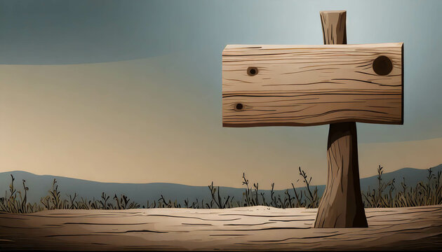 A rustic wooden picture frame stands prominently on a wooden table, set against a tranquil mountain backdrop at sunset, highlighting the beauty of nature and craftsmanship.