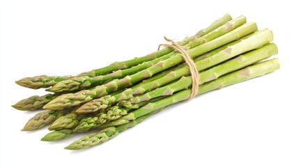 A bundle of fresh green asparagus spears, Their slender forms exuding vitality, Set against an isolated white background to underscore their crispness