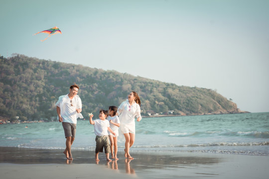 Asian family vacation at the beach with family relationships caused love and understanding to strengthen social immunity.