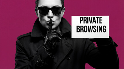 Joyous cybercriminal pleased after getting access granted message after using undetectable malware. Smiling evil man doing victory hand gesture after breaching firewall security using data scraper