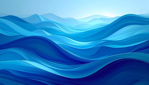 Abstract, flowing, blue, layered shapes suggesting waves or undulating landscape