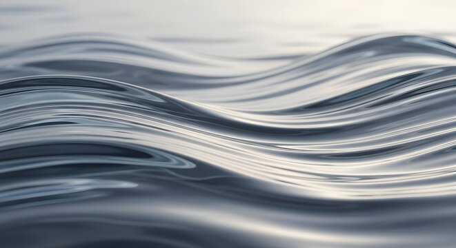 Abstract visualization of dark, highly reflective, metallic liquid waves creating smooth undulating curves and subtle light reflections against a bright background