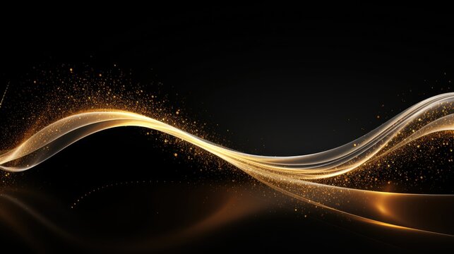 Vague radiant hue gold undulation design element upon with golden glint sparkles dim background