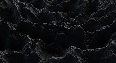Dark abstract relief background, rough undulating surface with dramatic shadows