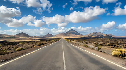 Image related to unexplored road journeys and adventures.Road through the scenic landscape to the destination in Lanzarote natural park