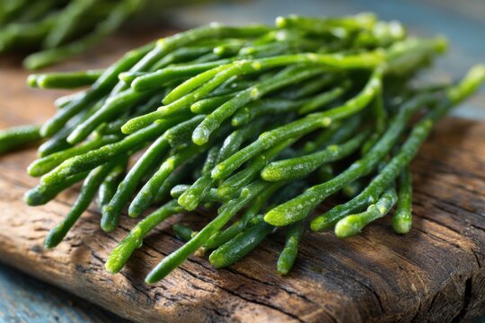 Fresh green samphire herb from the sea adds a unique flavor to culinary dishes and enhances gourmet cooking experiences