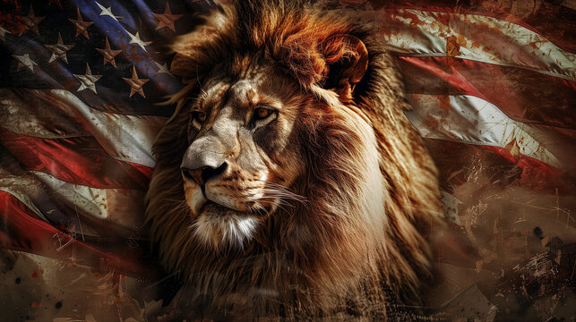 Lion wearing American flag. symbol of 4th July, Independence Day, american flag, memorial day, american democracy, usa patriotism, Ai generated image