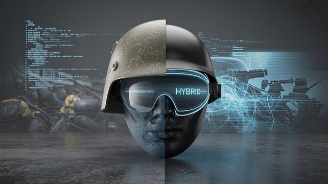 Enhanced Reality Soldier: A compelling image showcasing a futuristic soldier helmet merging traditional gear with advanced technology, illustrating the evolving landscape of combat.