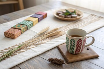 Minimalist mat with unity cup and Kwanza candle with copy space