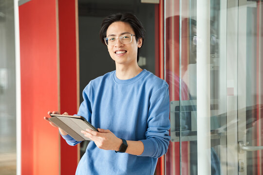 Cool guy on campus. Portrait of a young male university student standing in a campus corridor with his classmates in the background.