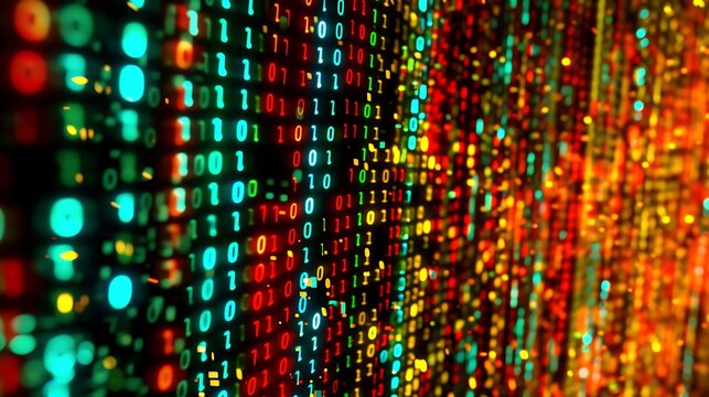 Digital data flow splitting into structured and unstructured information. Concept of Big Data analysis, organization, processing, storage, and cybersecurity.