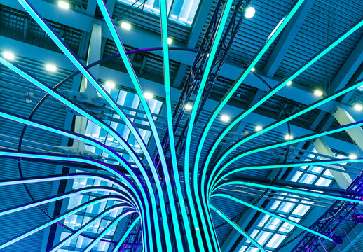 Abstract pattern panels with vibrant colors in modern art display