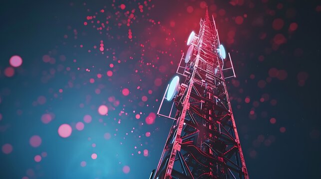 A futuristic telecommunication tower with global network connectivity lines visible, emphasizing internet business
