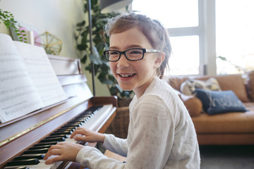 A vintage music studio with an upright piano with a wooden frame, vintage details