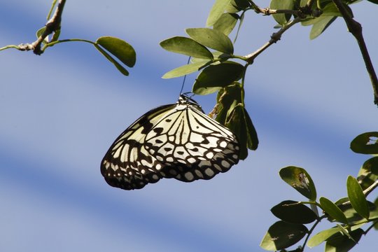 Fruit bat, flying fox, hanging upside down among green leaves on a tree, Sri Lanka