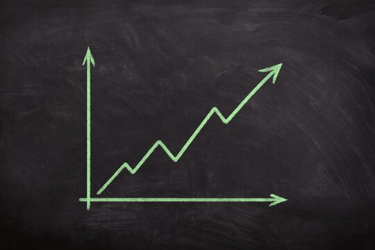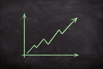 Drawing Upward Trending Arrow with Chalk on Green Blackboard Success Concept