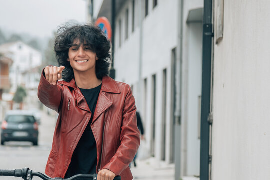 Man prefers an economical way to travel and rides bicycle on urban city street