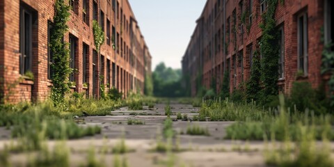 Sunlit abandoned warehouse with rustic industrial aesthetic