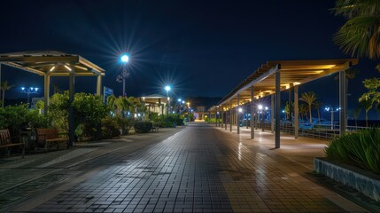 Woman riding scooter along sunny seaside promenade with colorful animation