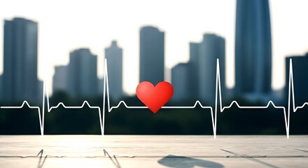 Neon heartbeat line glowing pulse urban night bokeh city energy