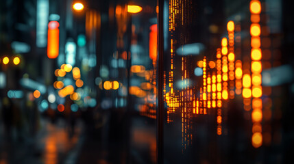Overlay of stock market data on urban cityscape