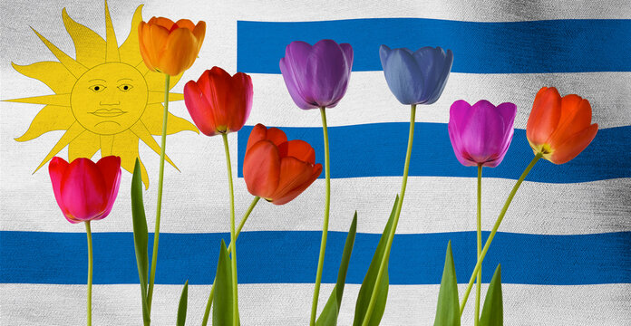 Male doctor with stethoscope on Uruguay flag. Doctor holding stethoscope on Uruguay flag