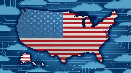 Usa map in american flag design on patriotic background