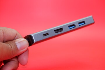 Portable USB hub consisting of USB A port, HDMI port and USB C port