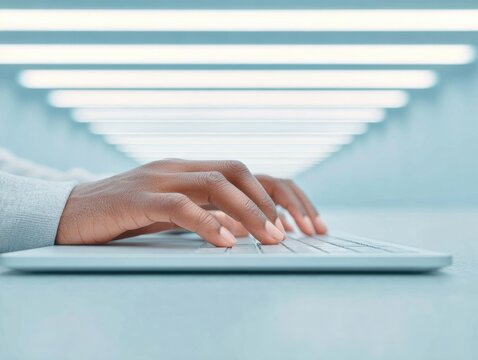 Digital Membership Onboarding Hands Typing on Laptop with Registration Form in Industrial Cool Tone Workspace Modern User Account Creation Concept