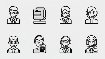 Premium collection of minimalist user interface line icons featuring person profile symbols, account avatars, human figure outlines and contact pictograms in clean modern illustration style on white b