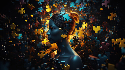 Social Media Diversity Illustrated with Yellow Puzzle on Black Background. Representation of Various User Profiles - Ages, Interests and Cultures.
