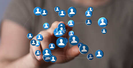 Visual representation of a digital network illustrating connections between profile icons in a modern technological environment