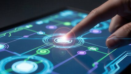 Smart home technology, centric remote control system with digital dashboard for air conditioning, safety security network or house automation. App software, ui panel programming IOT monitor snugly