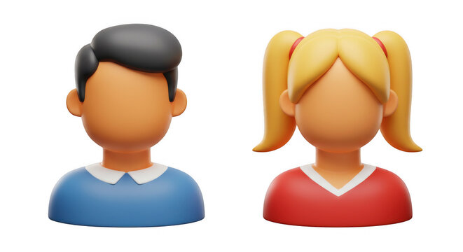 3d male and female avatars isolated on transparent background